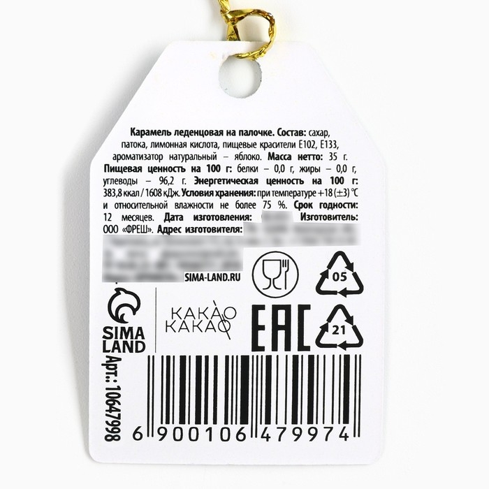 Леденец на палочке, в форме змеи «Для тебя в новый год», 35 г