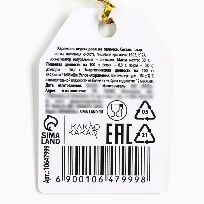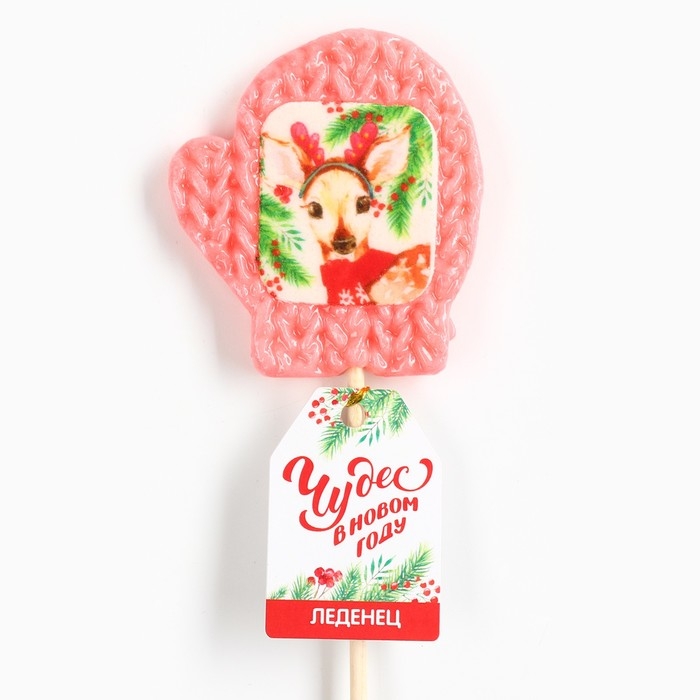 Новый год! Леденец на палочке, варежка, с вафельной картинкой «Чудес в новом году», 35 г