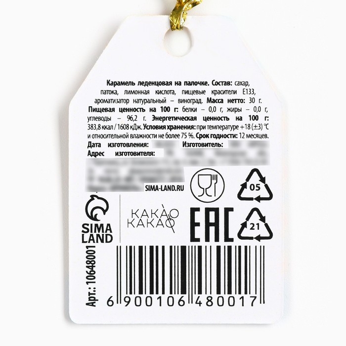 Новый год! Леденец на палочке, варежка, с вафельной картинкой «Тепла и уюта», 35 г