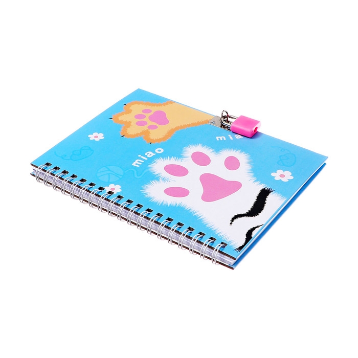 Записная книжка подарочная, 45 листов, линия, на замке, на гребне, Лапки (17,8х13см)