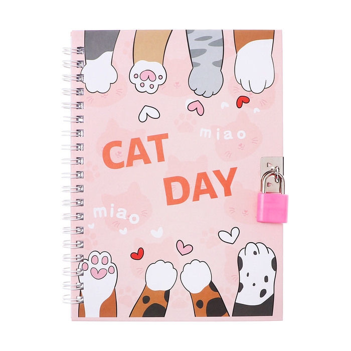 Записная книжка подарочная, 45 листов, линия, на замке, на гребне, Лапки (17,8х13см)