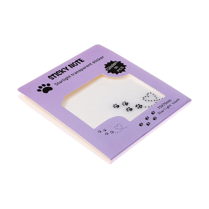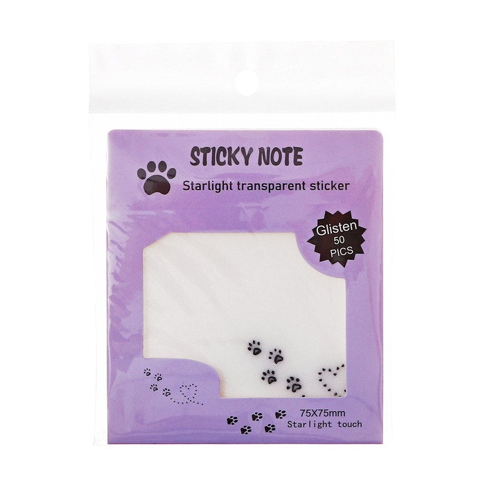Блок с липким краем 75мм х 75мм 50л пластик прозрачные с блестками Лапки кошки
