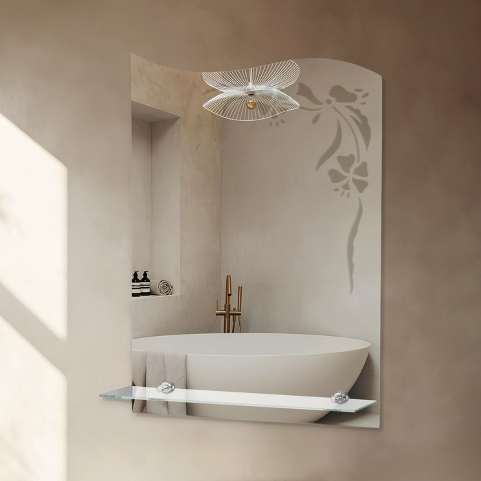 Зеркало, настенное, с пескоструйной графикой, с полкой 55х40 см