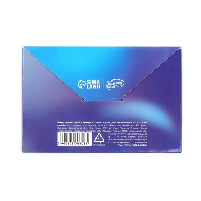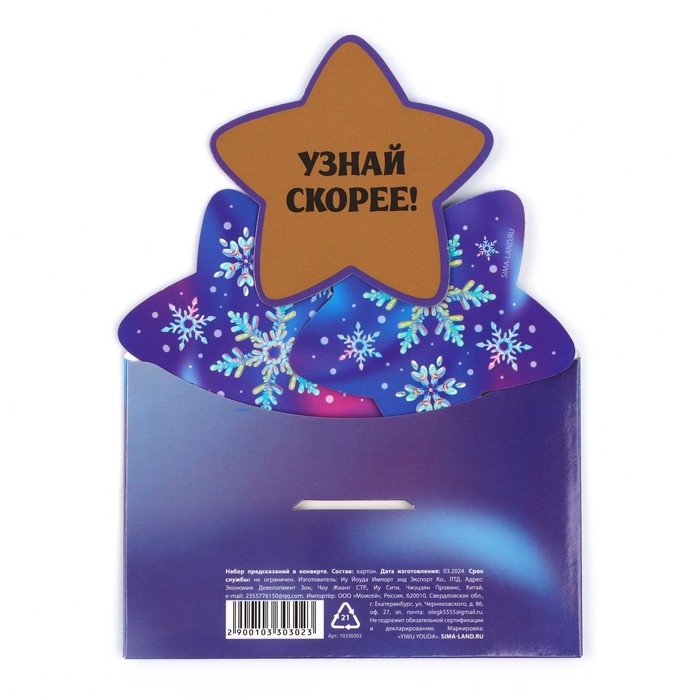 Предсказания новогодние в конверте «Теплые предсказания», на Новый год, 8 х 12 см
