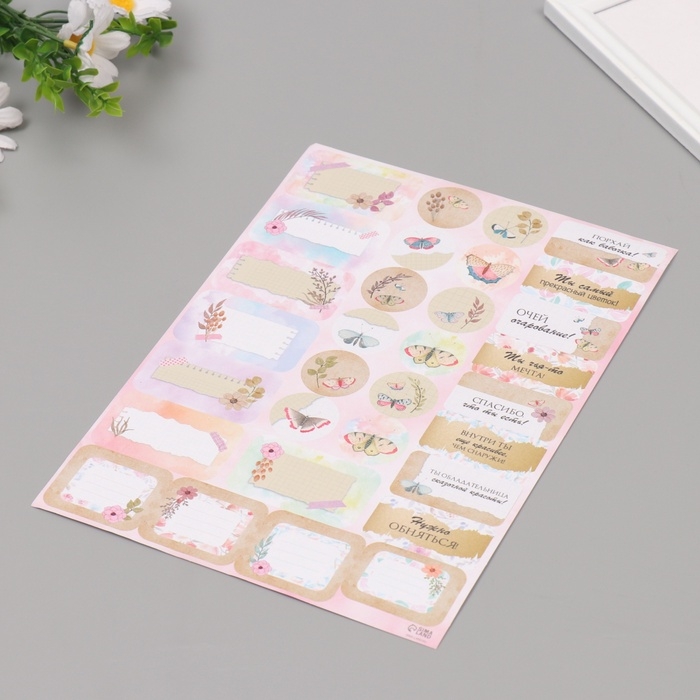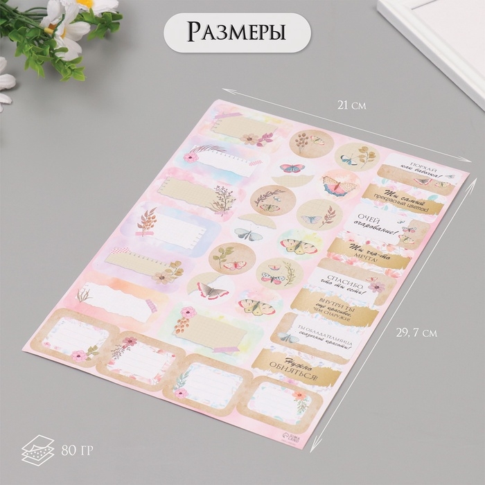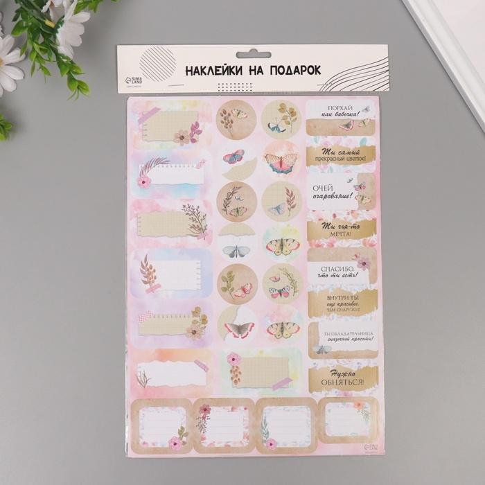 Наклейки на подарки "Крафт и цветы" 21х29,7 см