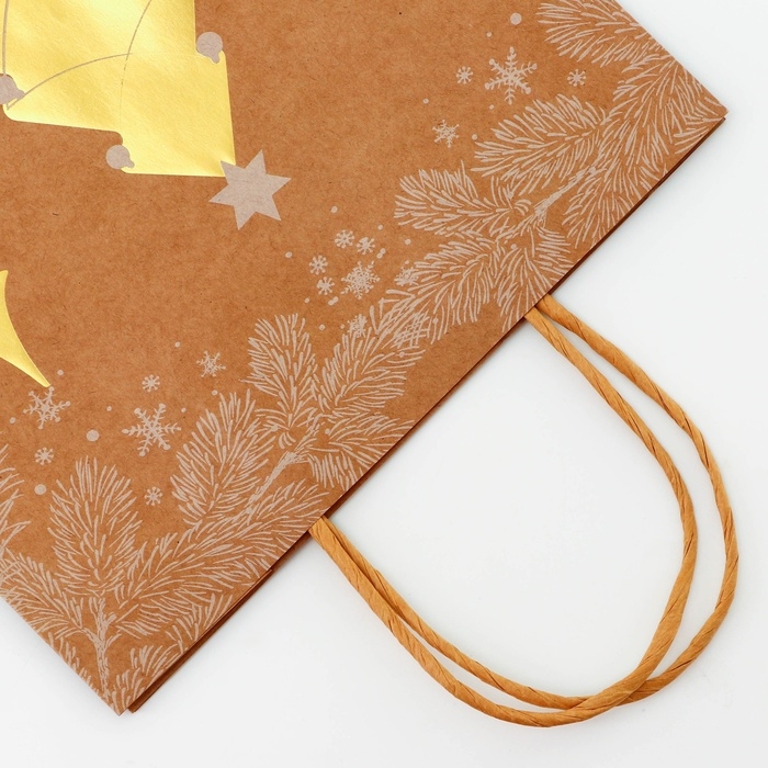 Пакет крафт с золотым тиснением, круглая ручка, "Рожденственский лес" 33 х 25 х 12 см, 120 г 10574