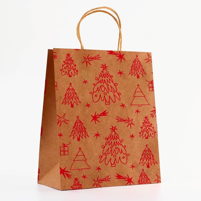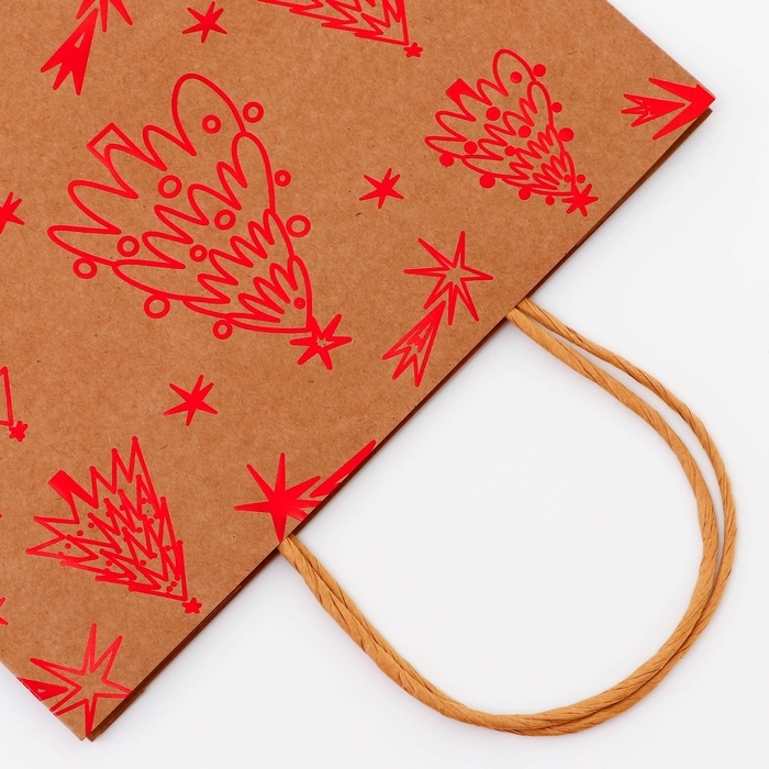 Пакет крафт новогодний 33 х 25 х 12 см - это стильное и функциональное решение для упаковки и транспортировки подарков в преддверии зимних праздников.