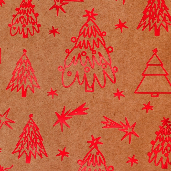 Пакет крафт с тиснением, круглая ручка, "Ёлочки" 33 х 25 х 12 см, 120 г