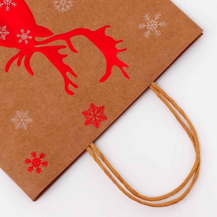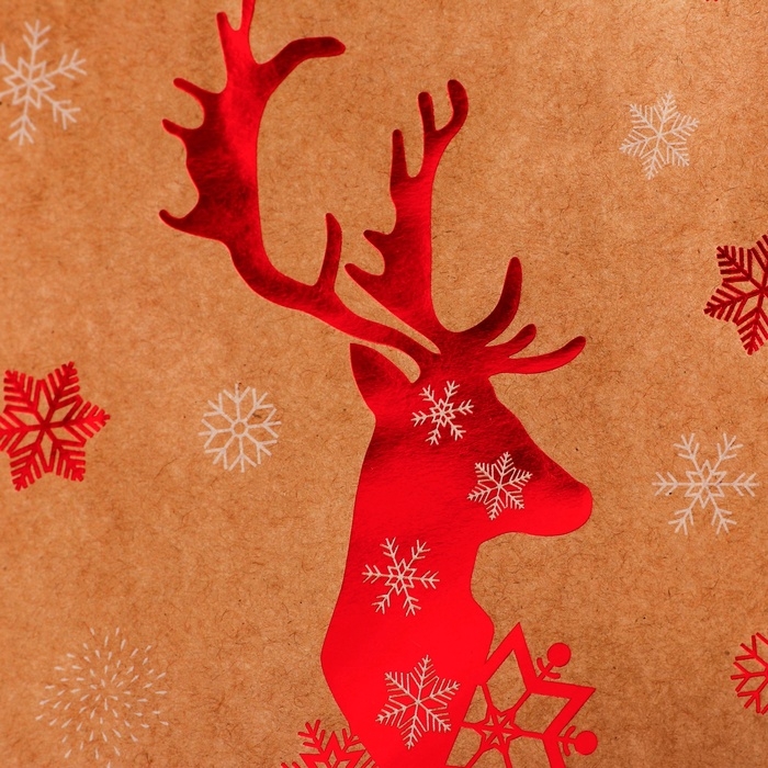 Пакет крафт с тиснением, круглая ручка, "Олень" 33 х 25 х 12 см, 120 г