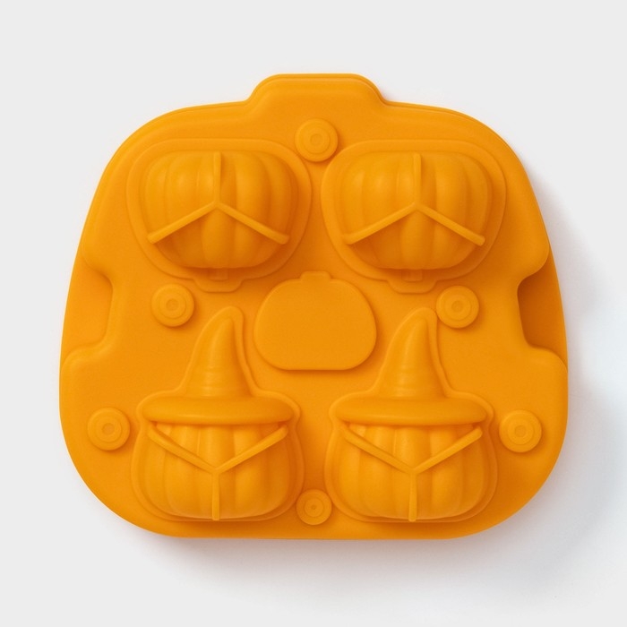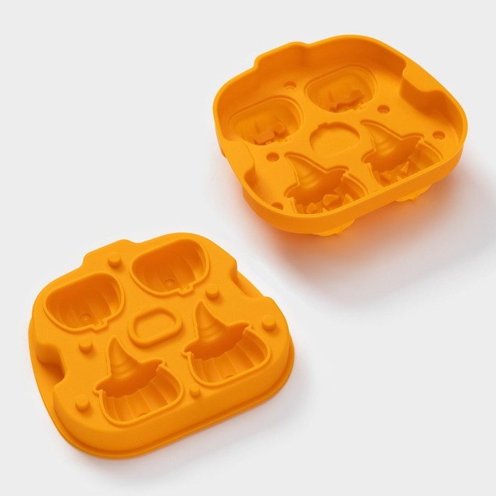 Форма для льда Доляна «Тыква», силикон, 4 ячейки, 15,4×14×4,5 см, цвет оранжевый