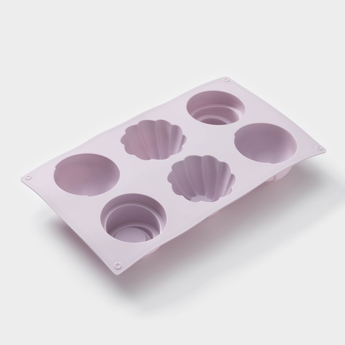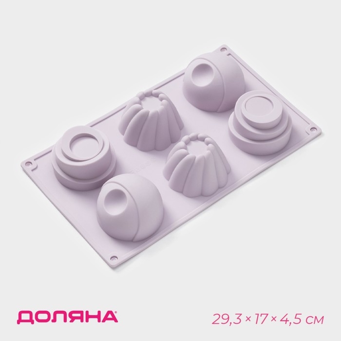 Форма для выпечки Доляна «Пудинг», силикон, 6 ячеек, 29,3×17×4,5 см, цвет сиреневый