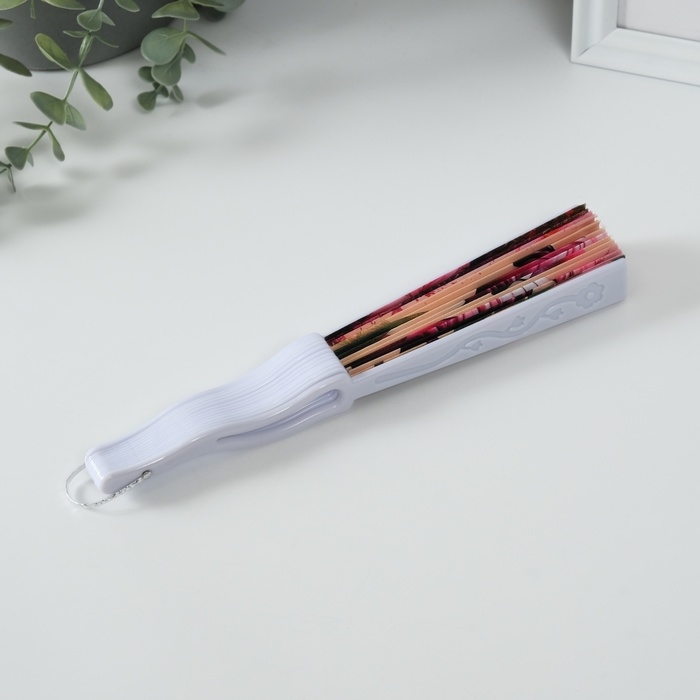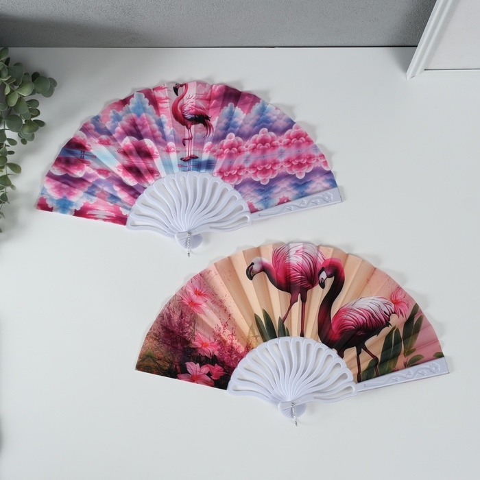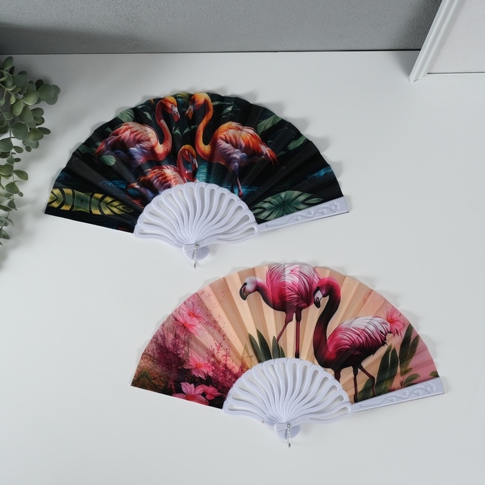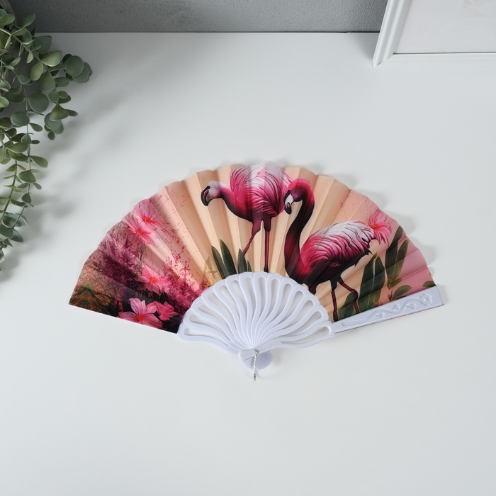 Веер пластик, текстиль "Розовый фламинго" МИКС 23 см