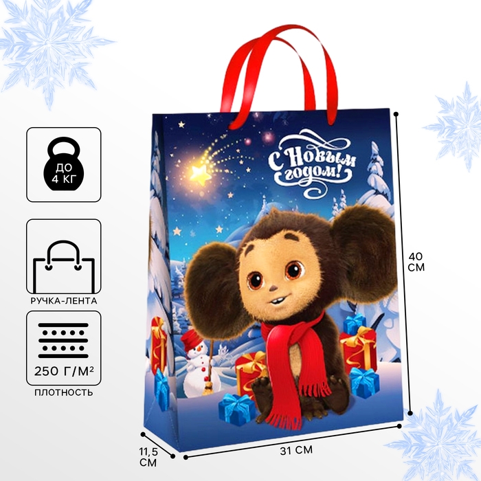 Пакет подарочный, 31х40х11.5 см, упаковка, Чебурашка