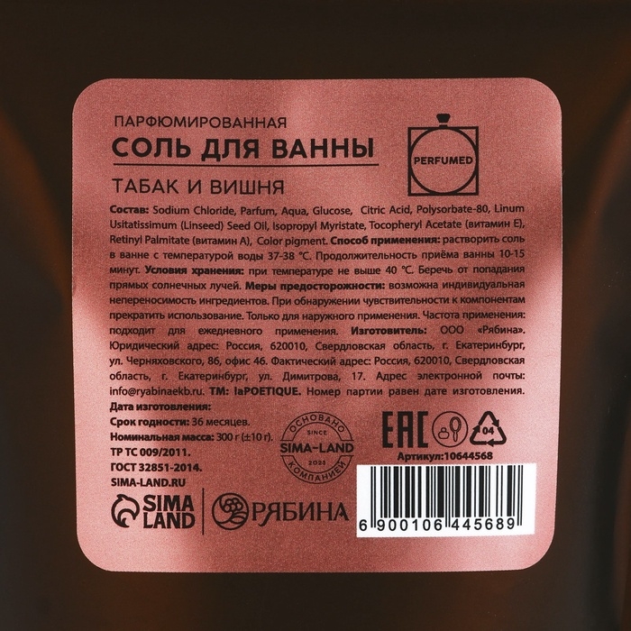Соль для ванны, 300 г, аромат табака и вишни, LA POETIQUE