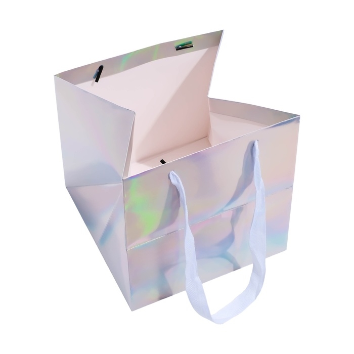 Пакет для торта с квадратным дном в голографическом исполнении - это истинное воплощение элегантности и утонченности в мире кондитерских изделий.