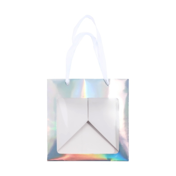Пакет для торта с квадратным дном и окном, голографический - это стильное и функциональное решение для упаковки и транспортировки тортов.