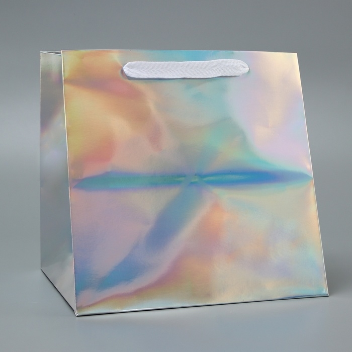 Пакет для торта с квадратным дном в голографическом исполнении - это истинное воплощение элегантности и утонченности в мире кондитерских изделий.
