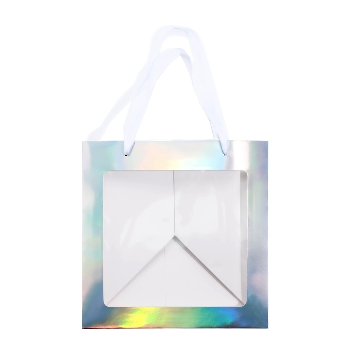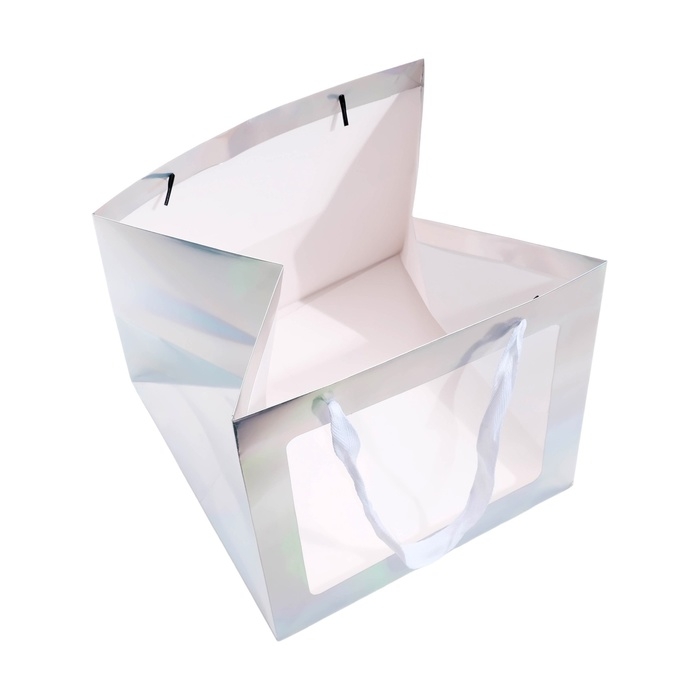 Пакет для торта с квадратным дном и окном, голографический - это стильное и функциональное решение для упаковки и транспортировки тортов.