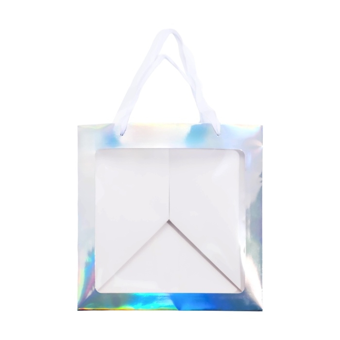 Пакет для торта с квадратным дном и окном, голографический - это стильное и функциональное решение для упаковки и транспортировки тортов.