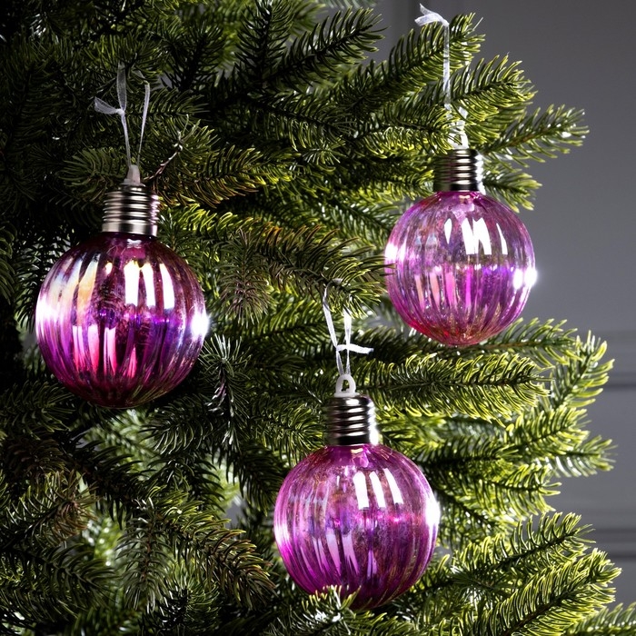 Набор елочных шаров "Розовые грани", d=7 см, 3 LED, 3 шт, батарейки AG13x9 (нет в комплекте), Свечение тёплое белое