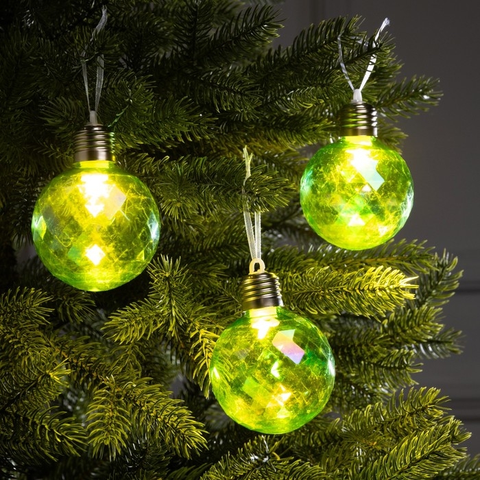 Набор елочных шаров "Акценты зеленого", d=7 см, 3 LED, 3 шт, батарейки AG13x9 (нет в комплекте), свечение теплое белое