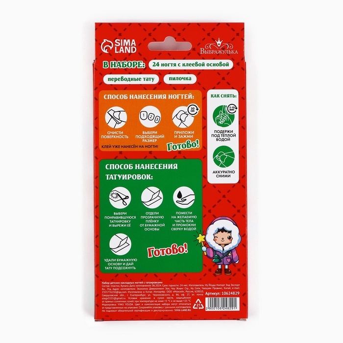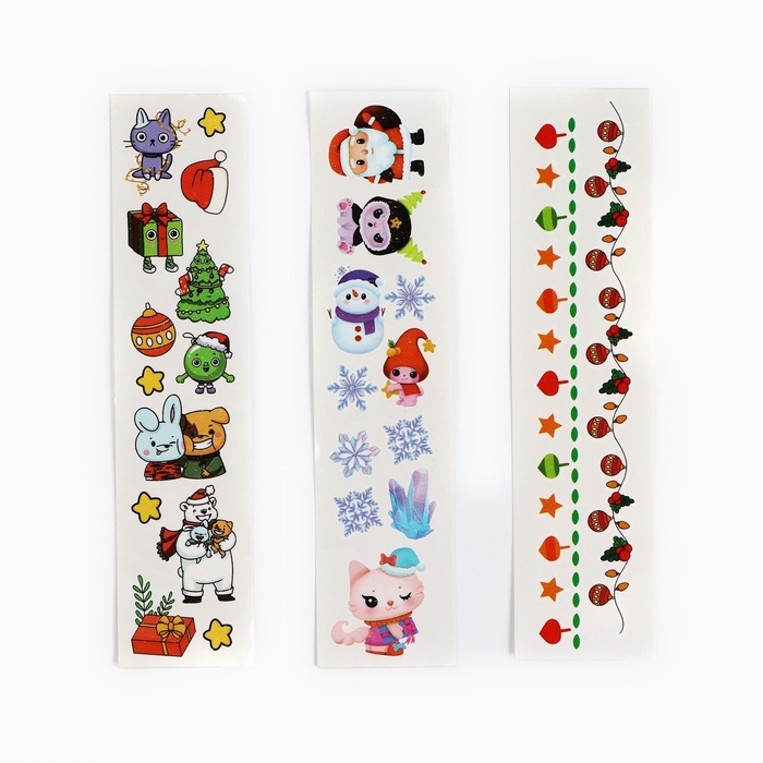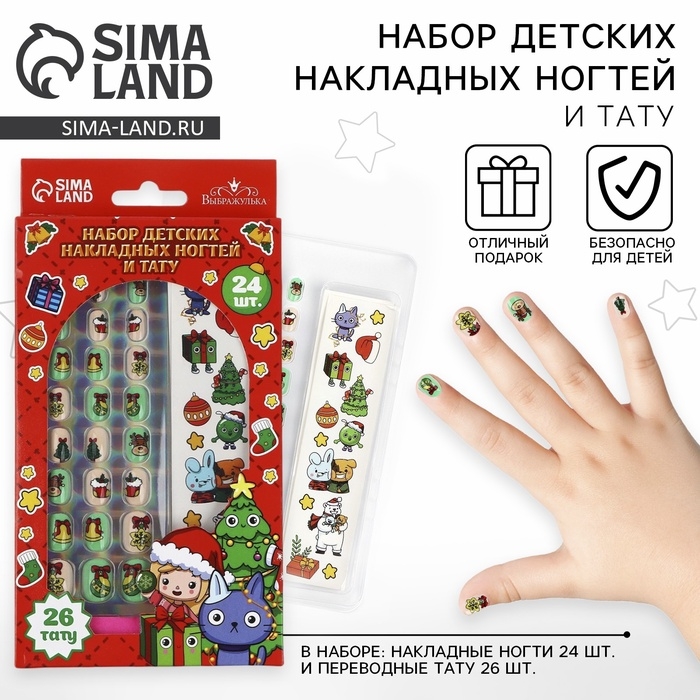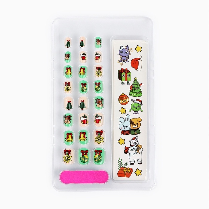 Набор детских накладных ногтей с татуировками на новый год «Новогоднее настроение»