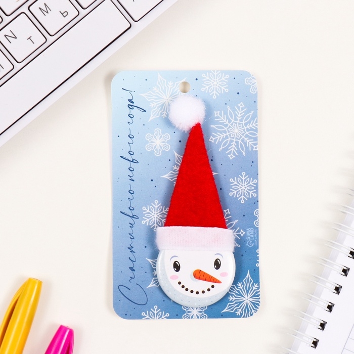 Значок закатной с колпаком d=35 мм "Снеговик" 6,5х11 см