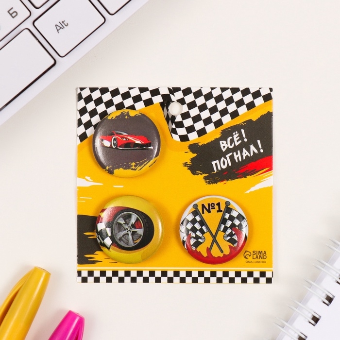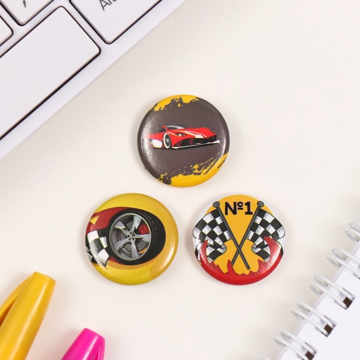 Значки закатные набор 3 шт d=25 мм "Гонки" 7х7 см