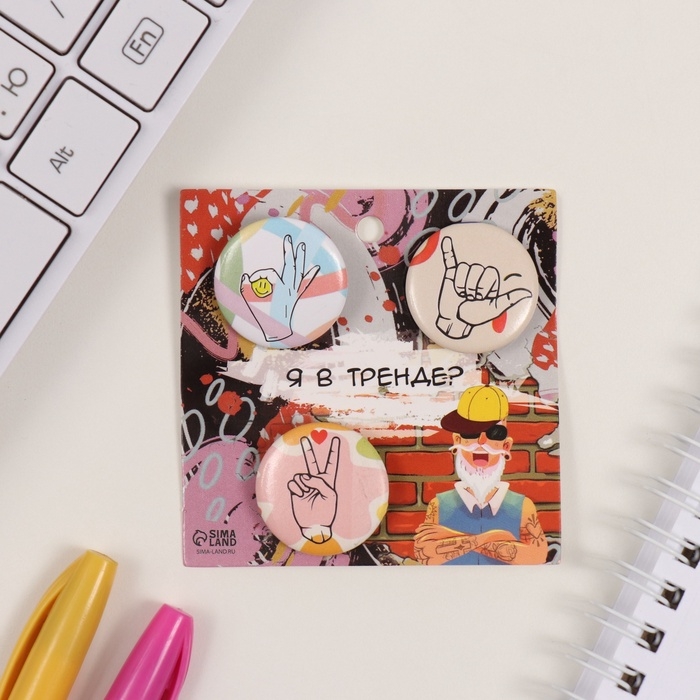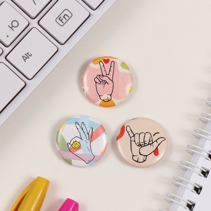 Значки закатные набор 3 шт d=25 мм "Жесты" 7х7 см
