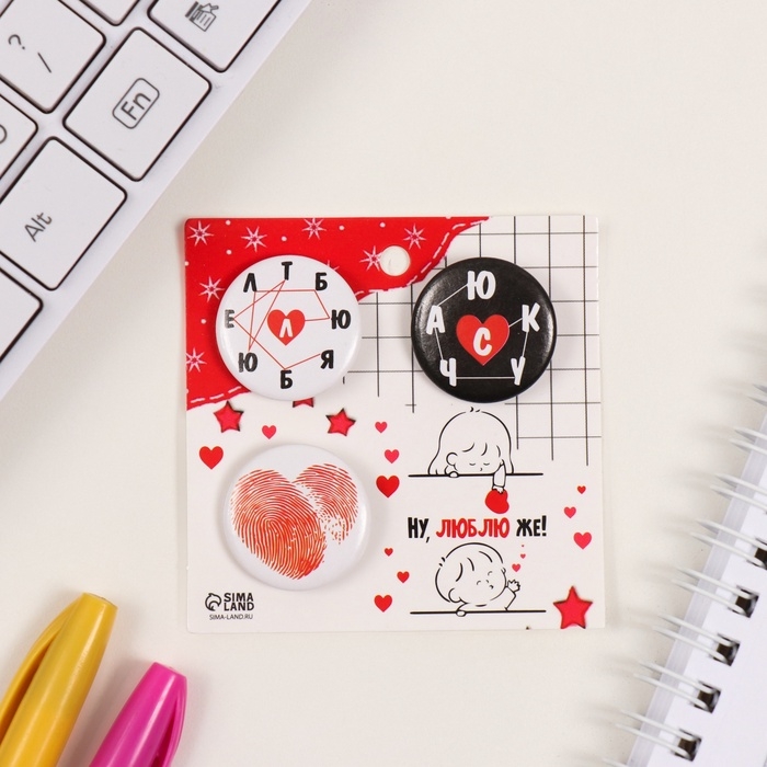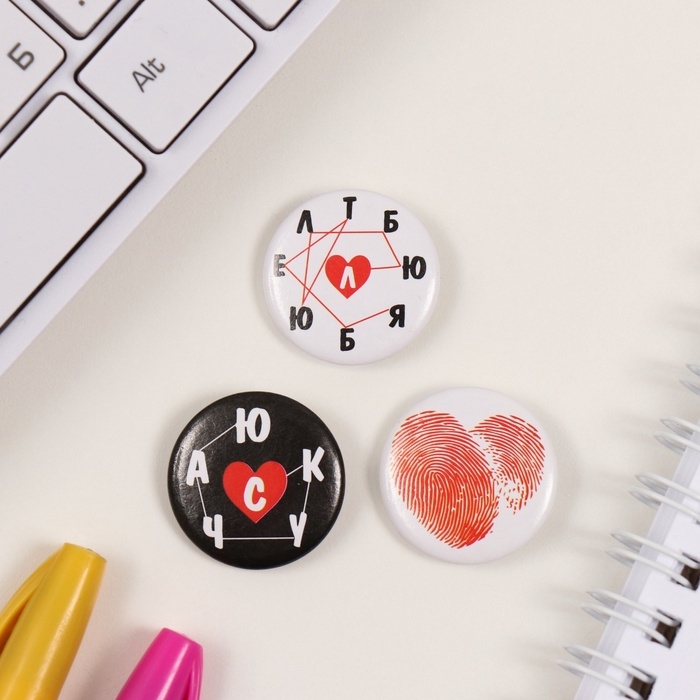 Значки закатные набор 3 шт d=25 мм "Люблю" 7х7 см