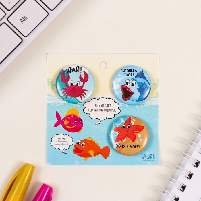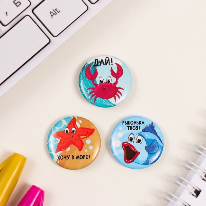Значки закатные набор 3 шт d=25 мм "Рыбки" 7х7 см