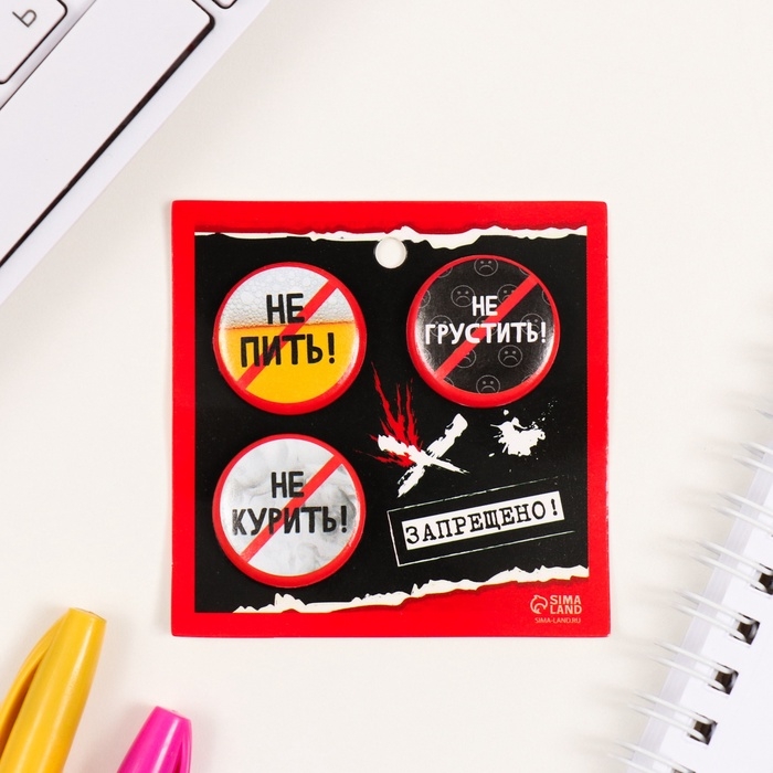Значки закатные набор 3 шт d=25 мм "Запреты" 7х7 см
