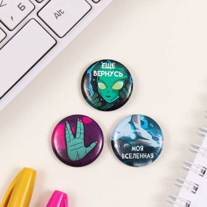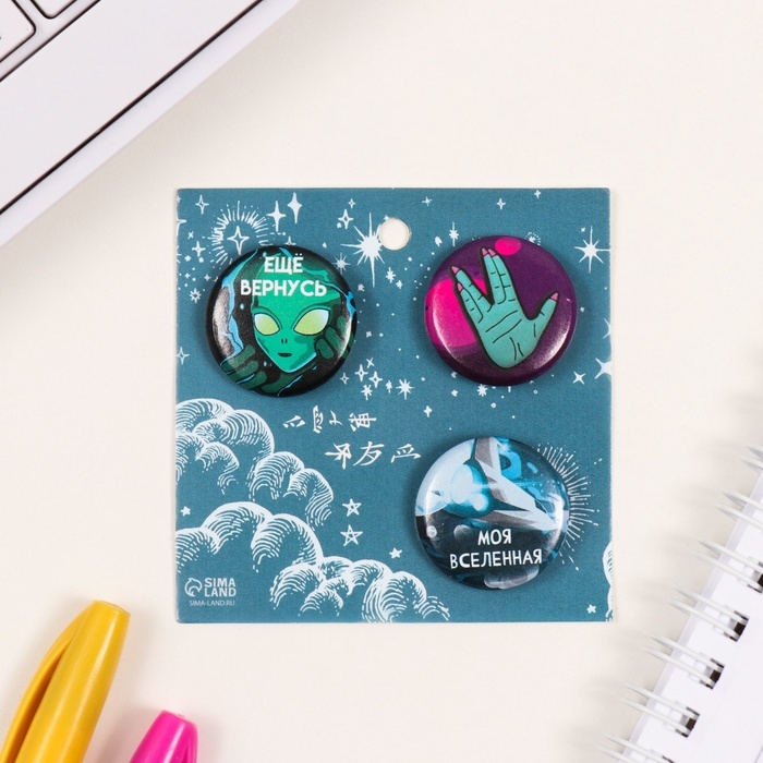 Значки закатные набор 3 шт d=25 мм "Космос" 7х7 см