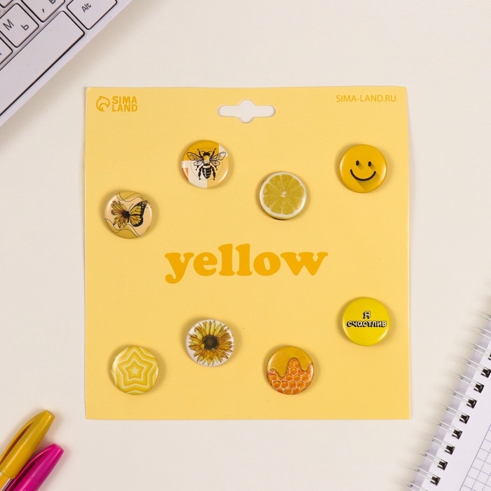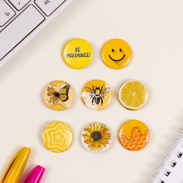 Значки закатные набор 8 шт d=25 мм "Жёлтые" 16,5х17 см