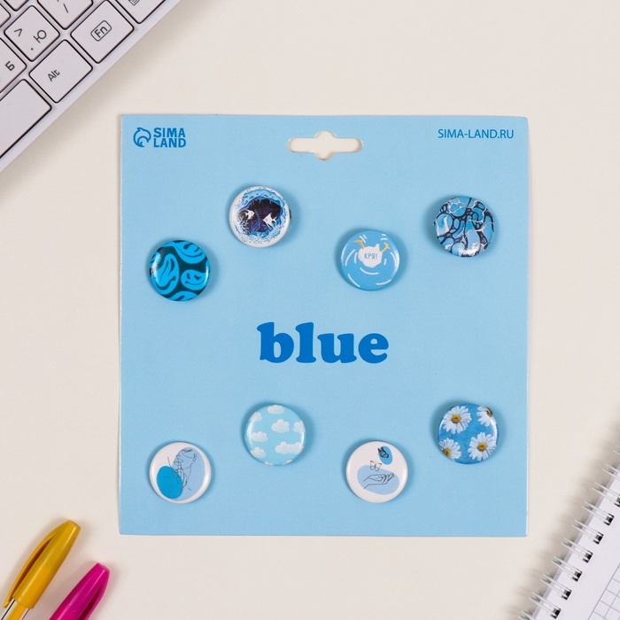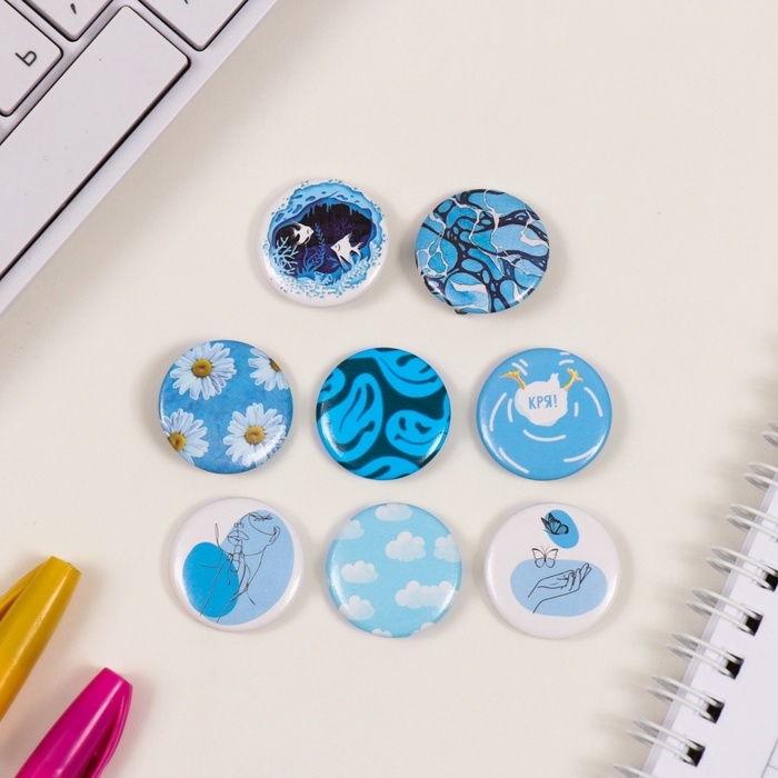 Значки закатные набор 8 шт d=25 мм "Голубые" 16,5х17 см