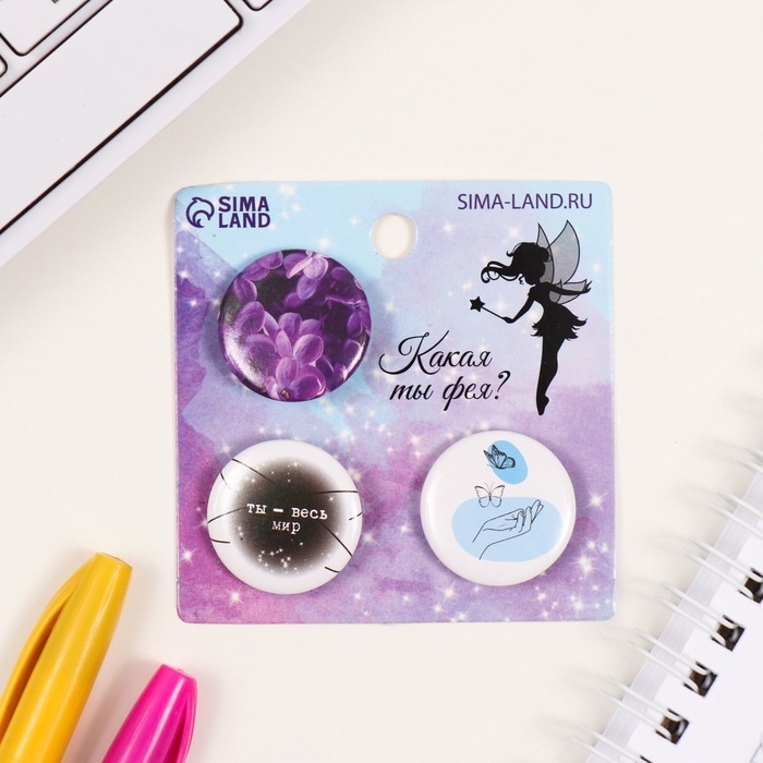 Значки закатные набор 3 шт d=25 мм "Ты - весь мир" 7х7 см