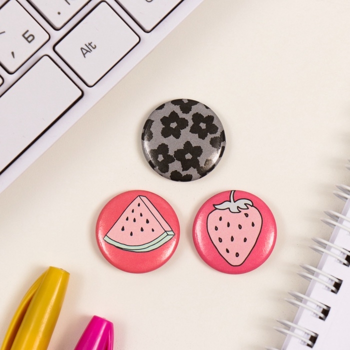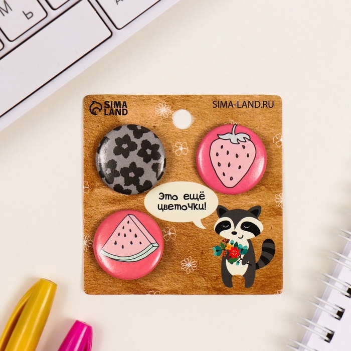 Значки закатные набор 3 шт d=25 мм "Это цветочки, ягодки впереди" 7х7 см