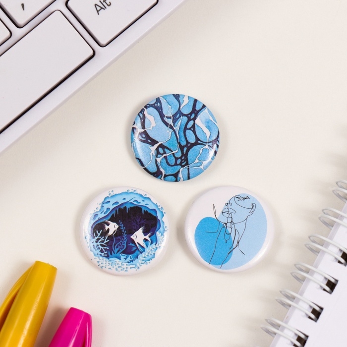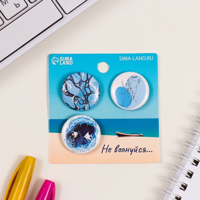 Значки закатные набор 3 шт d=25 мм "Моё море" 7х7 см