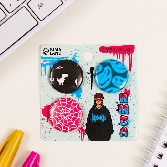 Значки закатные набор 3 шт d=25 мм "Твой мир" 7х7 см