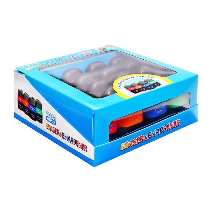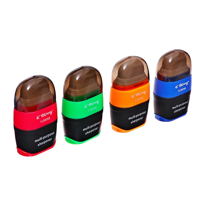 Точилка с контейнером двойная Универсальная с ластиком МИКС