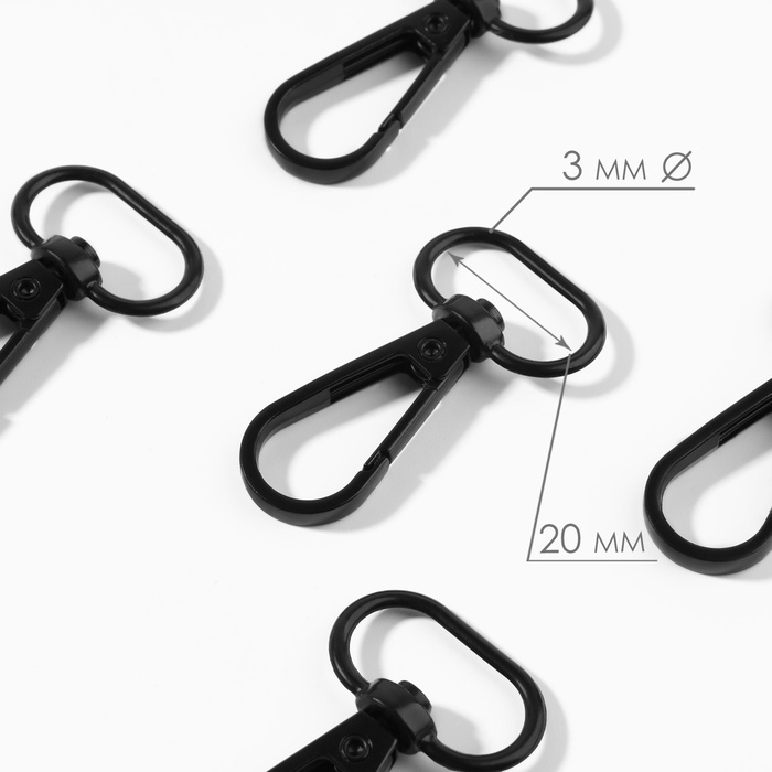 Карабин металлический, 45 × 25 мм / 20 × 3 мм, 5 шт, цвет чёрный