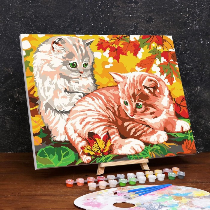 Картина по номерам на холсте с подрамником «Котята в листве», 40 х 50 см