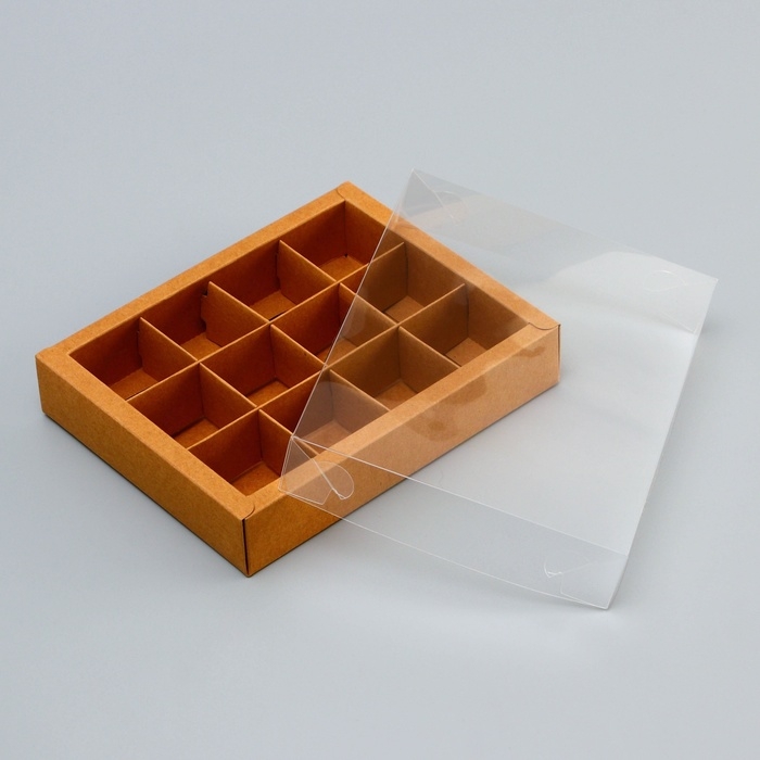 Коробка для 12 конфет размером 19 х 15 х 3,5 см с прозрачной крышкой — идеальное решение для стильной и эффектной упаковки.
