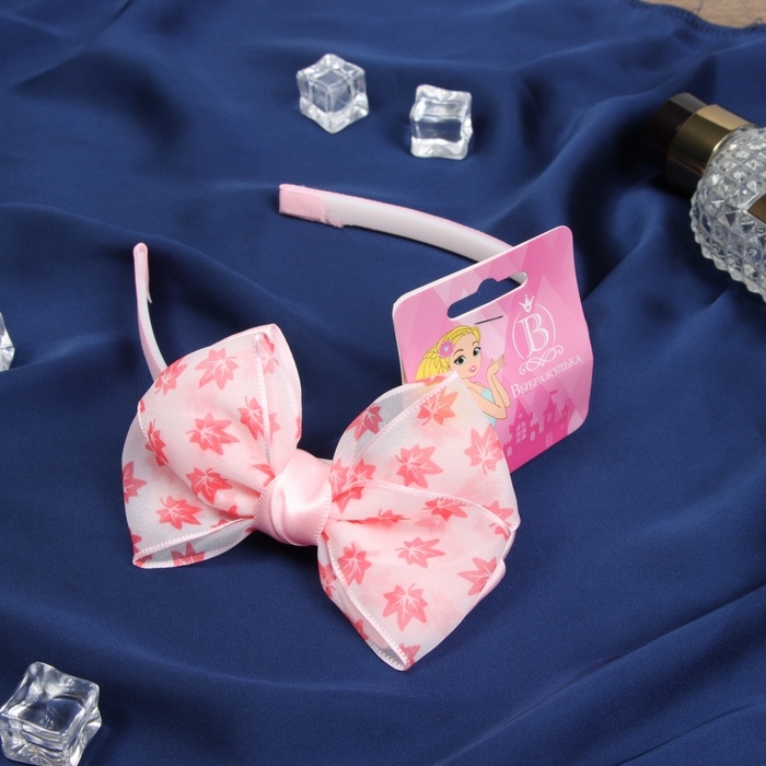 Ободок для волос "Бантик крошка" листья, 10х1 см, розовый