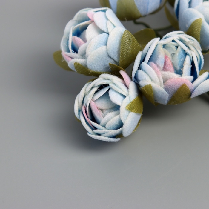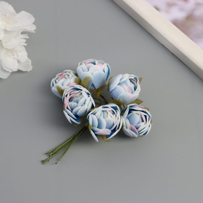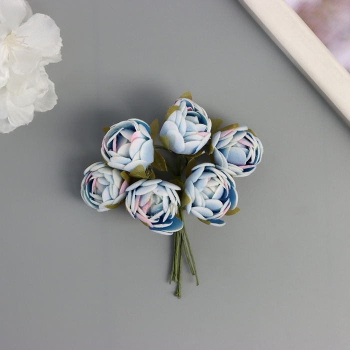 Декор для творчества "Пионы" бело-голубой (1 набор=1 букет) в букете 6 шт 2,5х10,5 см