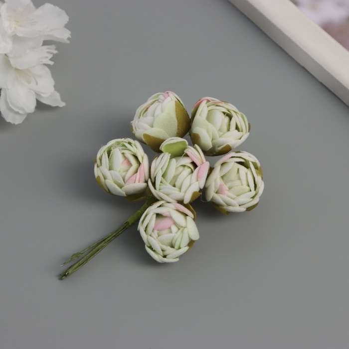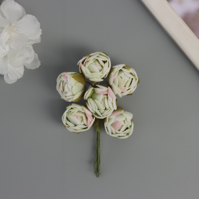 Декор для творчества "Пионы" бело-зелёные (1 набор=1 букет) в букете 6 шт 2,5х10,5 см