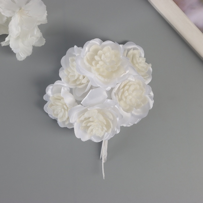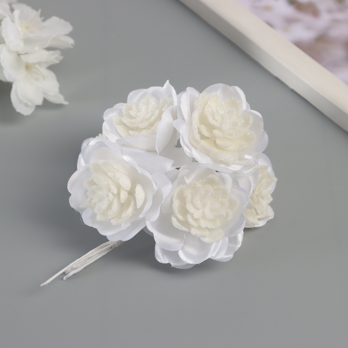 Декор для творчества "Камелия" белый (1 набор=1 букет) в букете 6 шт 4х11 см