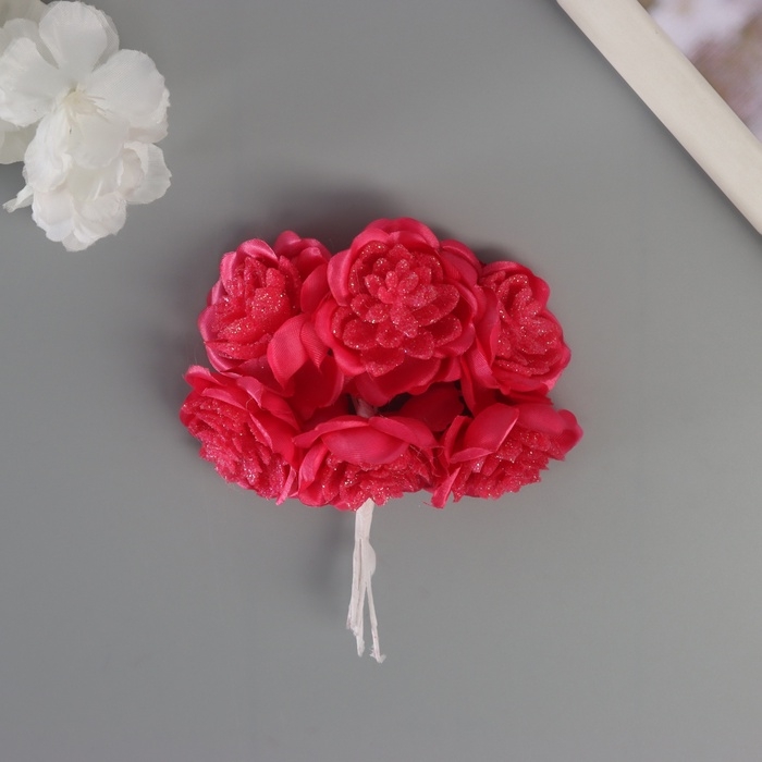 Декор для творчества "Камелия" малиновый (1 набор=1 букет) в букете 6 шт 4х11 см