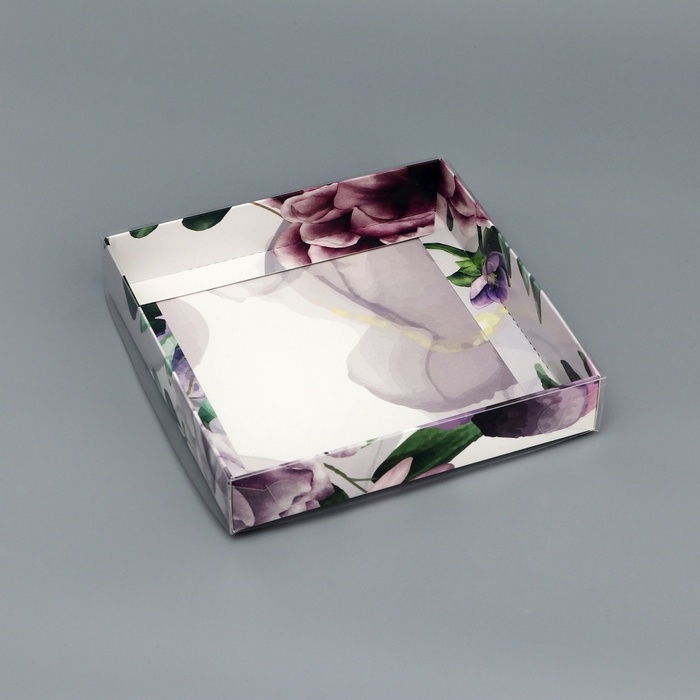 Коробка сборная с PVC крышкой, "Подарок для тебя", 16 х 16 х 3 см. Кондитерская упаковка