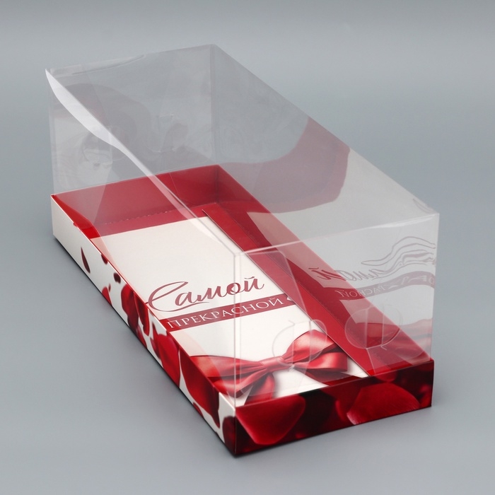 Коробка с прозрачной крышкой под рулет, "Самой прекрасной", 30 х 12 х 12 см. Кондитерская упаковка